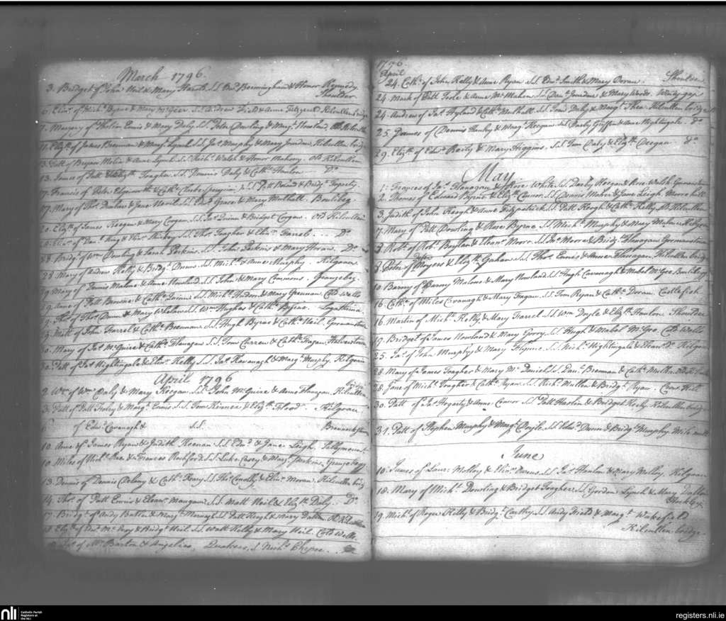 Kilcullen; County of Kildare; Archdiocese of Dublin. Baptisms, Mar. 1796 to June 1796
