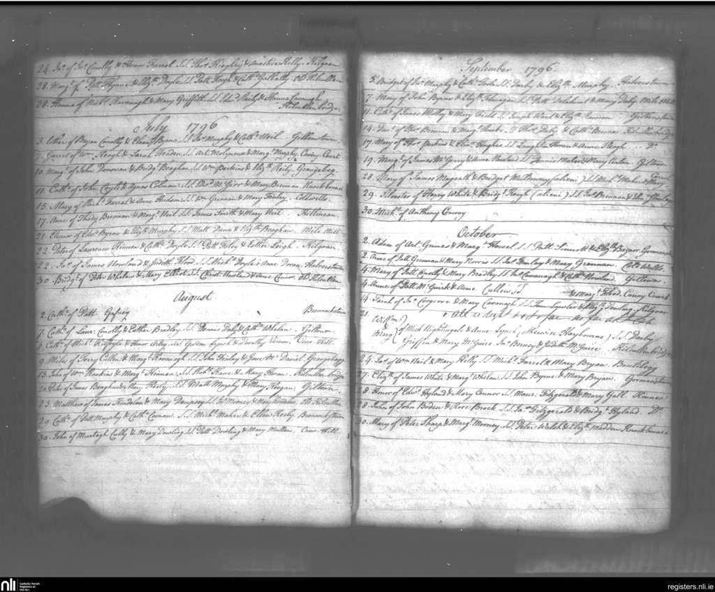 Kilcullen; County of Kildare; Archdiocese of Dublin. Baptisms, June 1796 to Oct. 1796