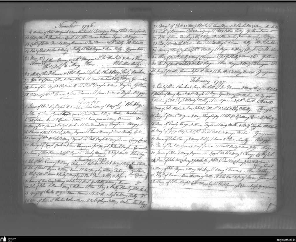 Kilcullen; County of Kildare; Archdiocese of Dublin. Baptisms, Nov. 1796 to Feb. 1797