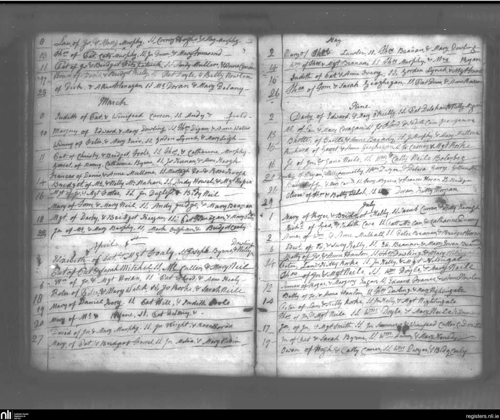 Kilcullen; County of Kildare; Archdiocese of Dublin. Baptisms, Feb. 1800 to July 1800