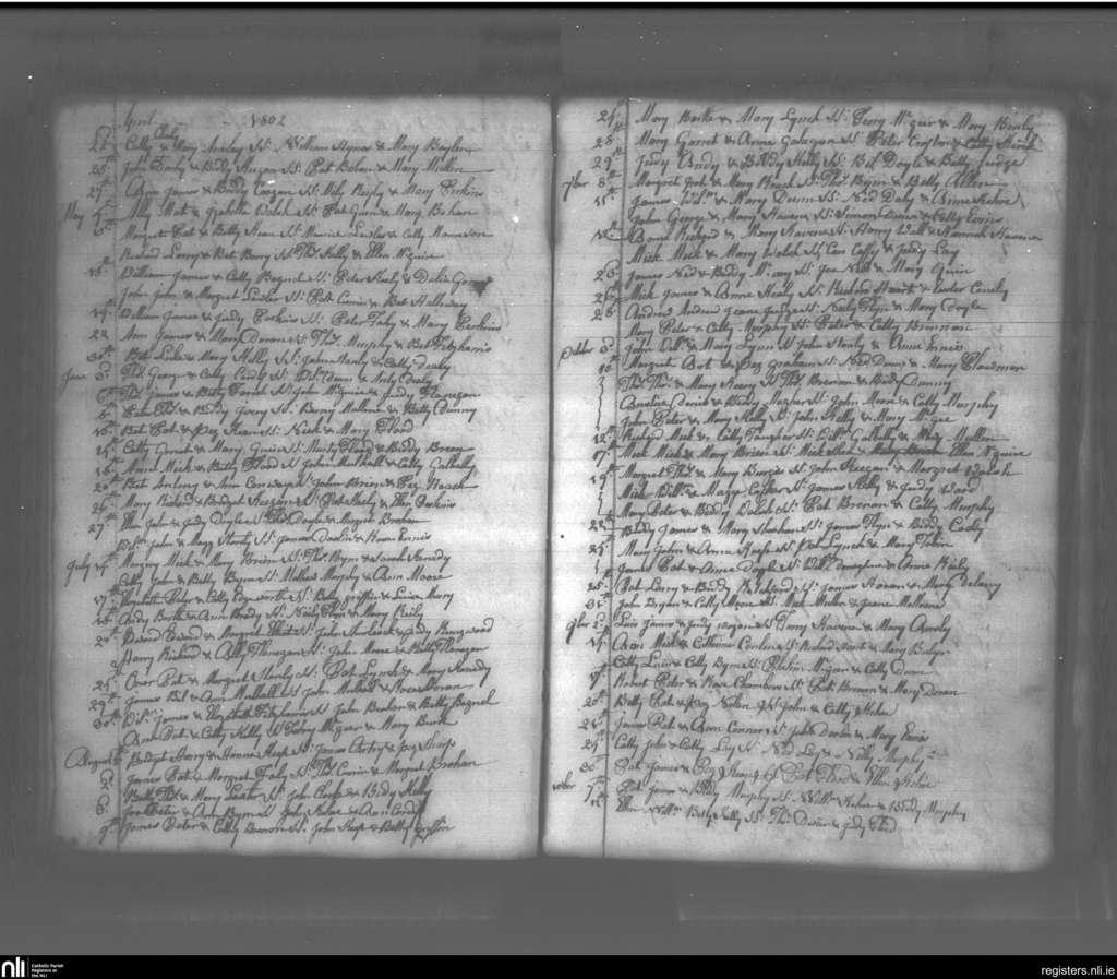 Kilcullen; County of Kildare; Archdiocese of Dublin. Baptisms, Apr. 1802 to Dec. 1802