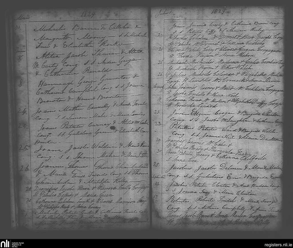 Maynooth; County of Kildare, Dublin; Archdiocese of Dublin. Baptisms, May 1829 to Sep. 1829