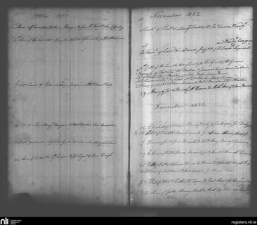 Maynooth; County of Kildare, Dublin; Archdiocese of Dublin. Baptisms, Oct. 1832 to Dec. 1832