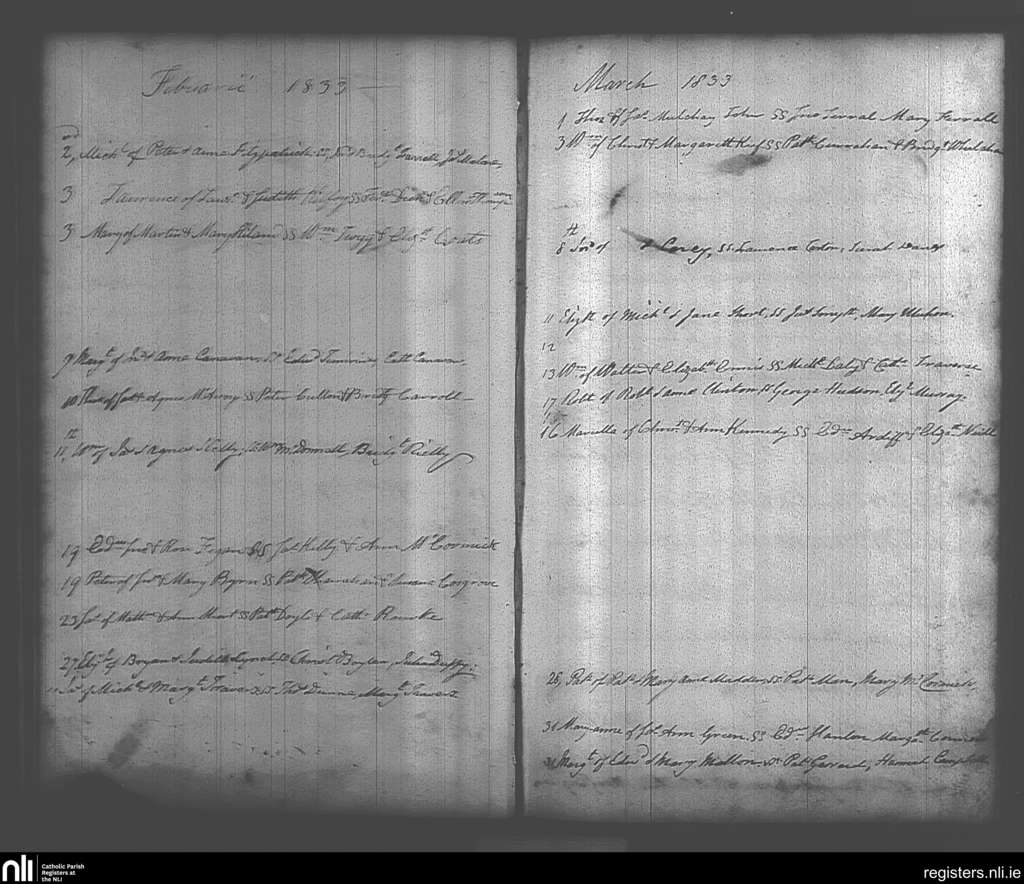 Maynooth; County of Kildare, Dublin; Archdiocese of Dublin. Baptisms, Feb. 1833 to Mar. 1833