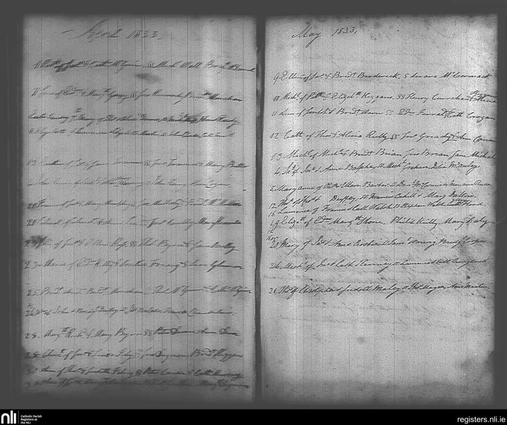 Maynooth; County of Kildare, Dublin; Archdiocese of Dublin. Baptisms, Apr. 1833 to May 1833