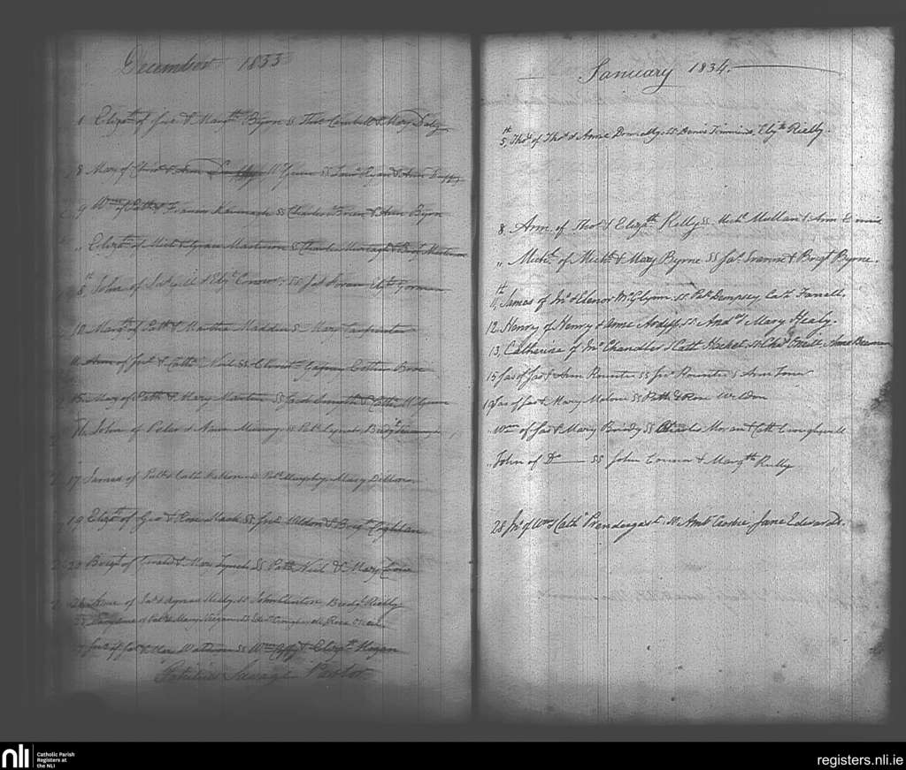 Maynooth; County of Kildare, Dublin; Archdiocese of Dublin. Baptisms, Dec. 1833 to Jan. 1834