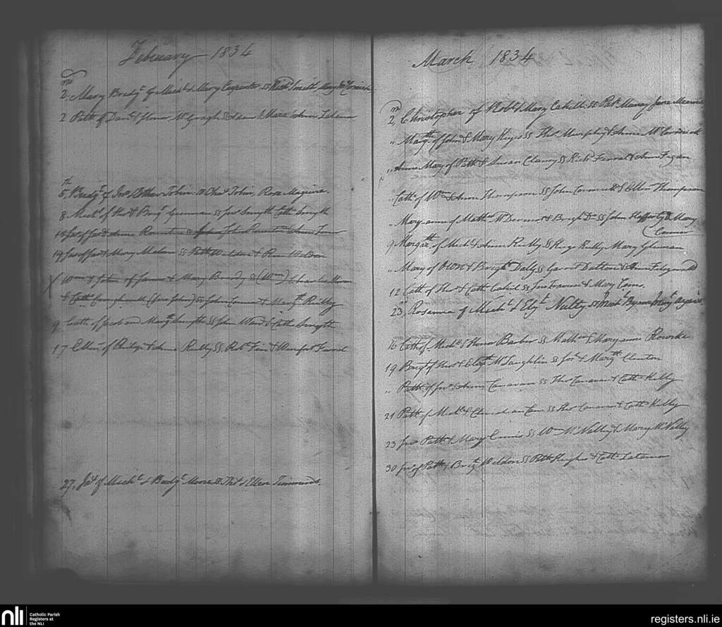 Maynooth; County of Kildare, Dublin; Archdiocese of Dublin. Baptisms, Feb. 1834 to Mar. 1834