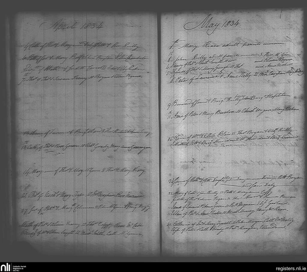 Maynooth; County of Kildare, Dublin; Archdiocese of Dublin. Baptisms, Apr. 1834 to May 1834