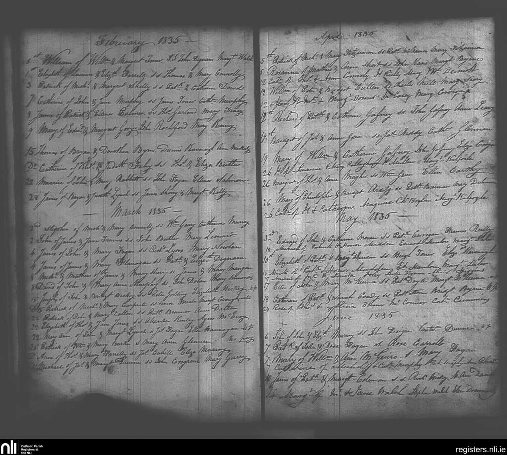 Maynooth; County of Kildare, Dublin; Archdiocese of Dublin. Baptisms, Feb. 1835 to June 1835