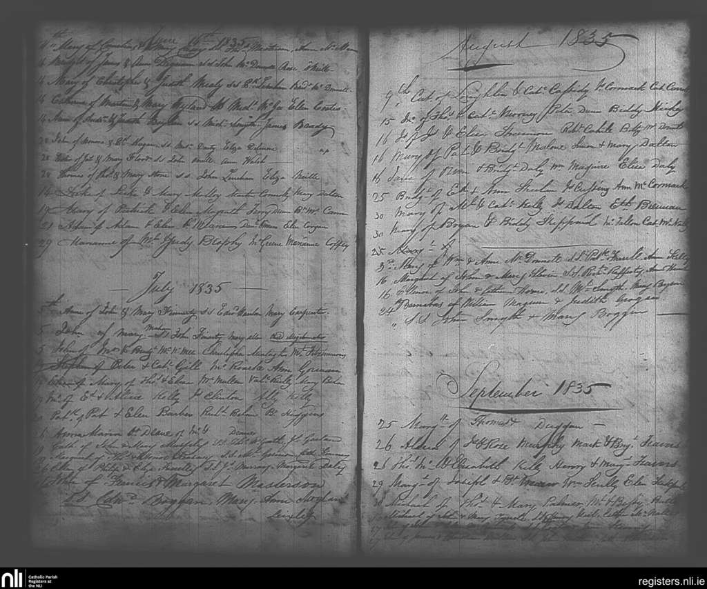 Maynooth; County of Kildare, Dublin; Archdiocese of Dublin. Baptisms, June 1835 to Sep. 1835