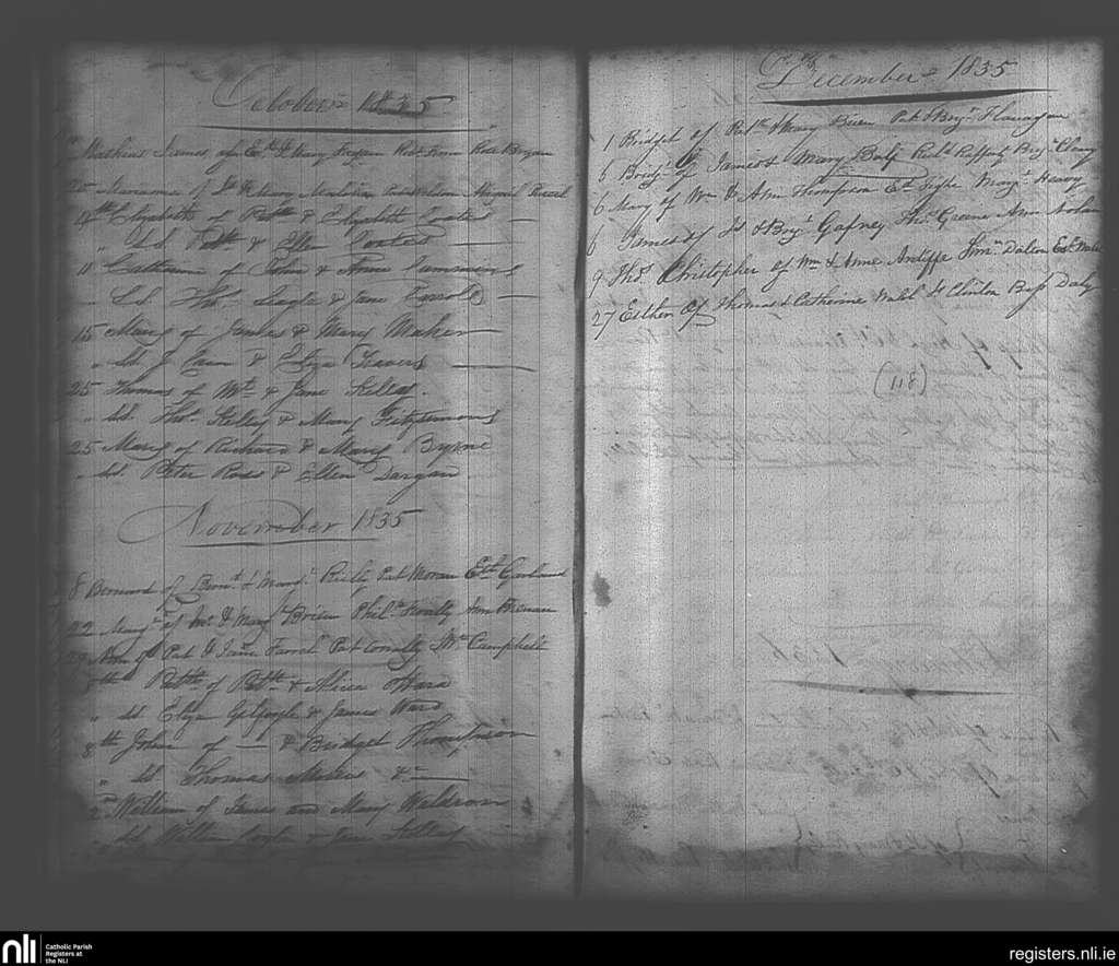 Maynooth; County of Kildare, Dublin; Archdiocese of Dublin. Baptisms, Oct. 1835 to Dec. 1835