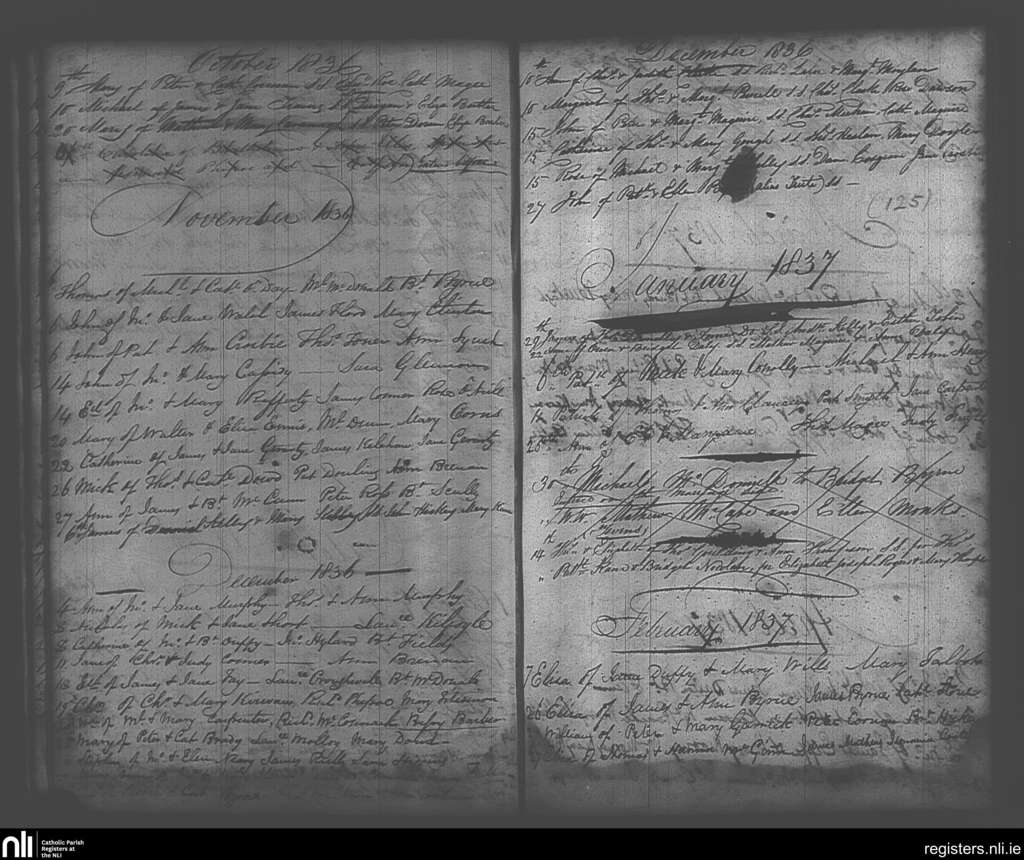 Maynooth; County of Kildare, Dublin; Archdiocese of Dublin. Baptisms, Oct. 1836 to Feb. 1837