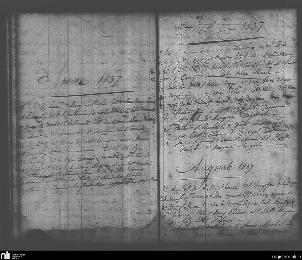 Maynooth; County of Kildare, Dublin; Archdiocese of Dublin. Baptisms, June 1837 to Aug. 1837