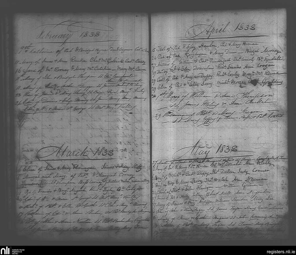 Maynooth; County of Kildare, Dublin; Archdiocese of Dublin. Baptisms, Feb. 1838 to May 1838