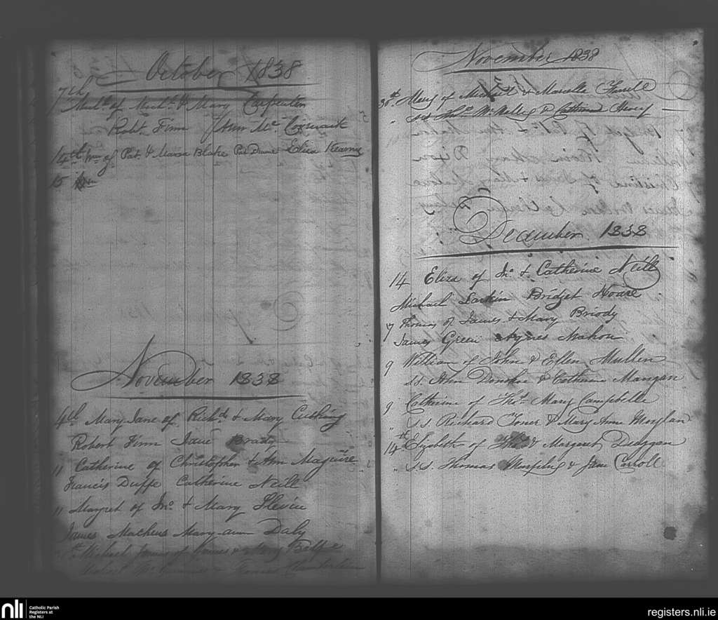 Maynooth; County of Kildare, Dublin; Archdiocese of Dublin. Baptisms, Oct. 1838 to Dec. 1838