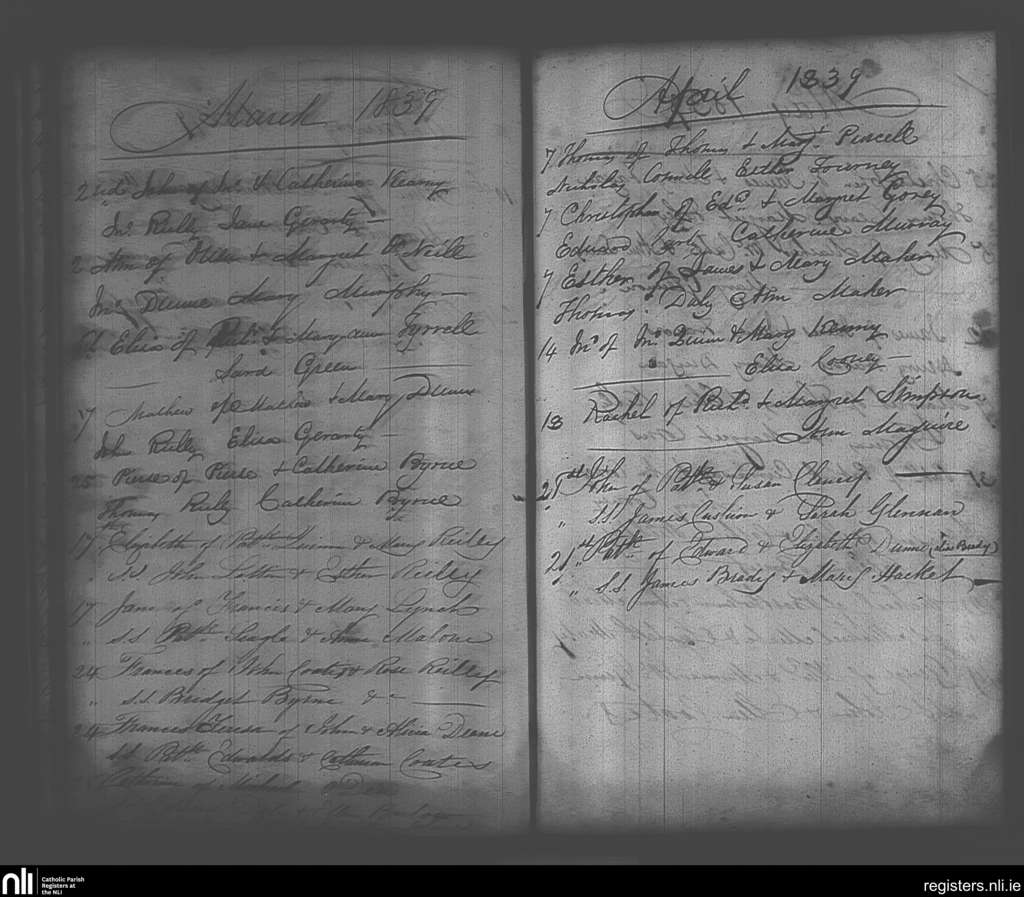 Maynooth; County of Kildare, Dublin; Archdiocese of Dublin. Baptisms, Mar. 1839 to Apr. 1839