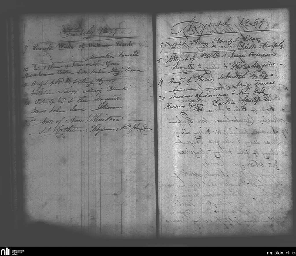 Maynooth; County of Kildare, Dublin; Archdiocese of Dublin. Baptisms, July 1839 to Aug. 1839