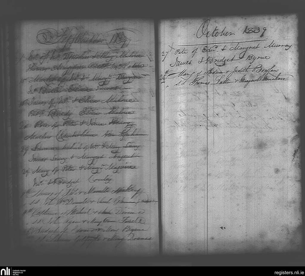 Maynooth; County of Kildare, Dublin; Archdiocese of Dublin. Baptisms, Sep. 1839 to Oct. 1839