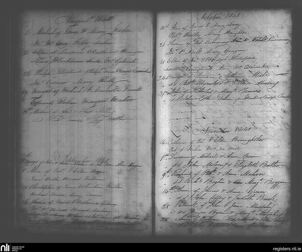 Maynooth; County of Kildare, Dublin; Archdiocese of Dublin. Baptisms, Aug. 1841 to Nov. 1841