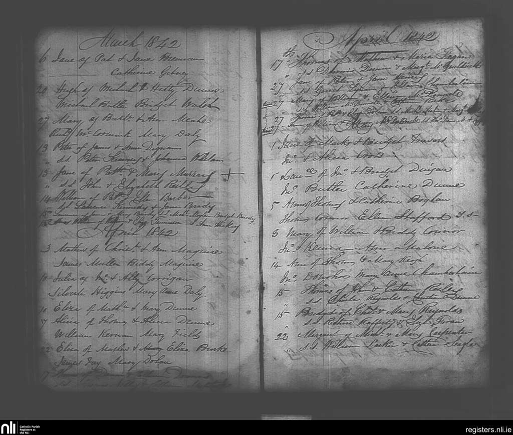 Maynooth; County of Kildare, Dublin; Archdiocese of Dublin. Baptisms, Mar. 1842 to May 1842