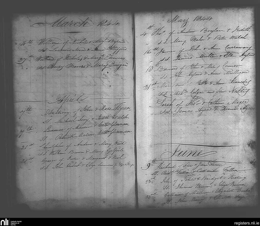 Maynooth; County of Kildare, Dublin; Archdiocese of Dublin. Baptisms, Mar. 1844 to June 1844