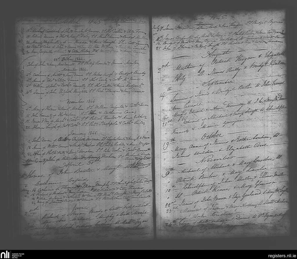 Maynooth; County of Kildare, Dublin; Archdiocese of Dublin. Baptisms, Oct. 1844 to Nov. 1845