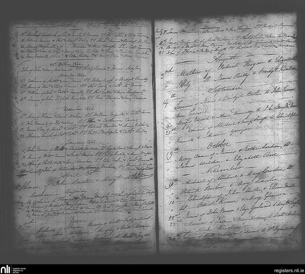 Maynooth; County of Kildare, Dublin; Archdiocese of Dublin. Baptisms, Oct. 1844 to Nov. 1845