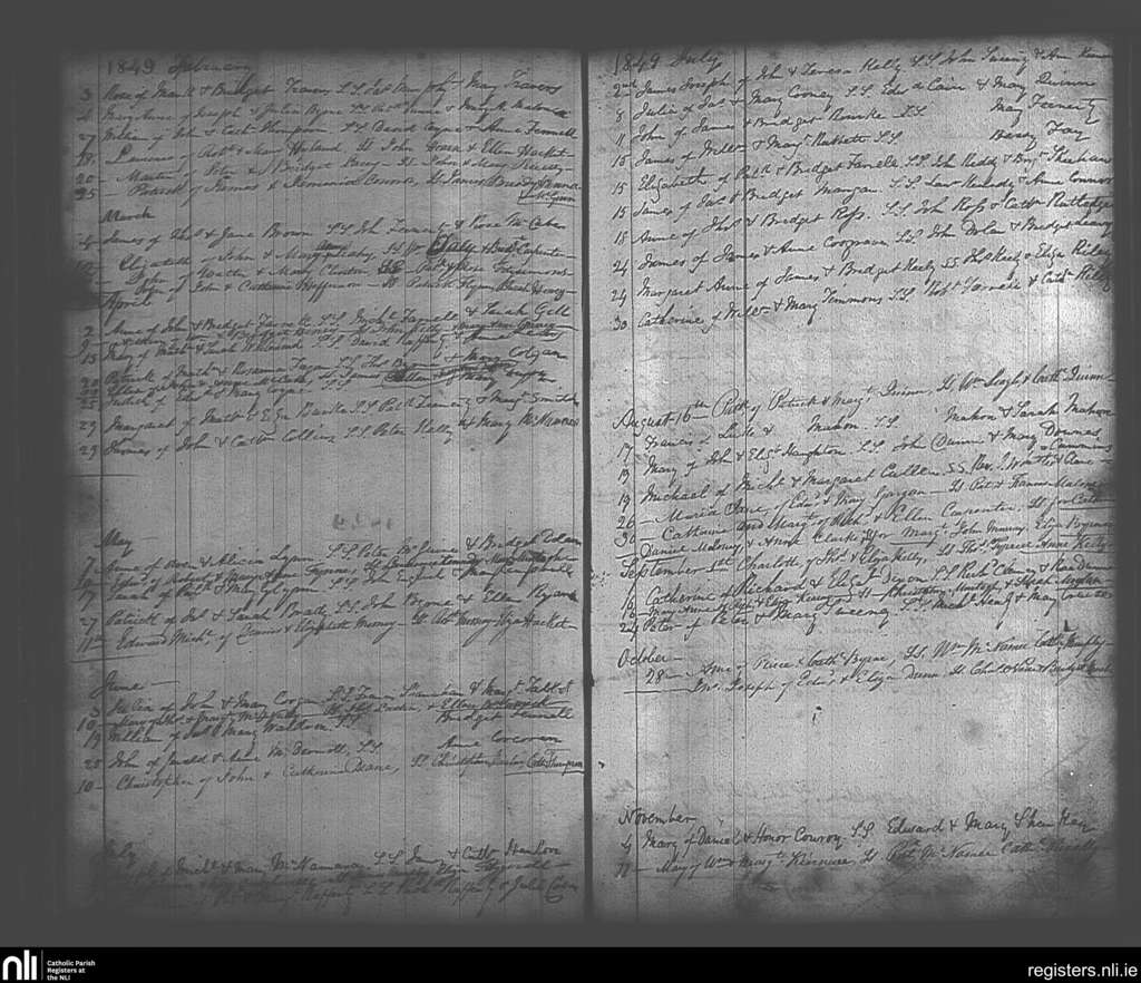 Maynooth; County of Kildare, Dublin; Archdiocese of Dublin. Baptisms, Feb. 1849 to Nov. 1849