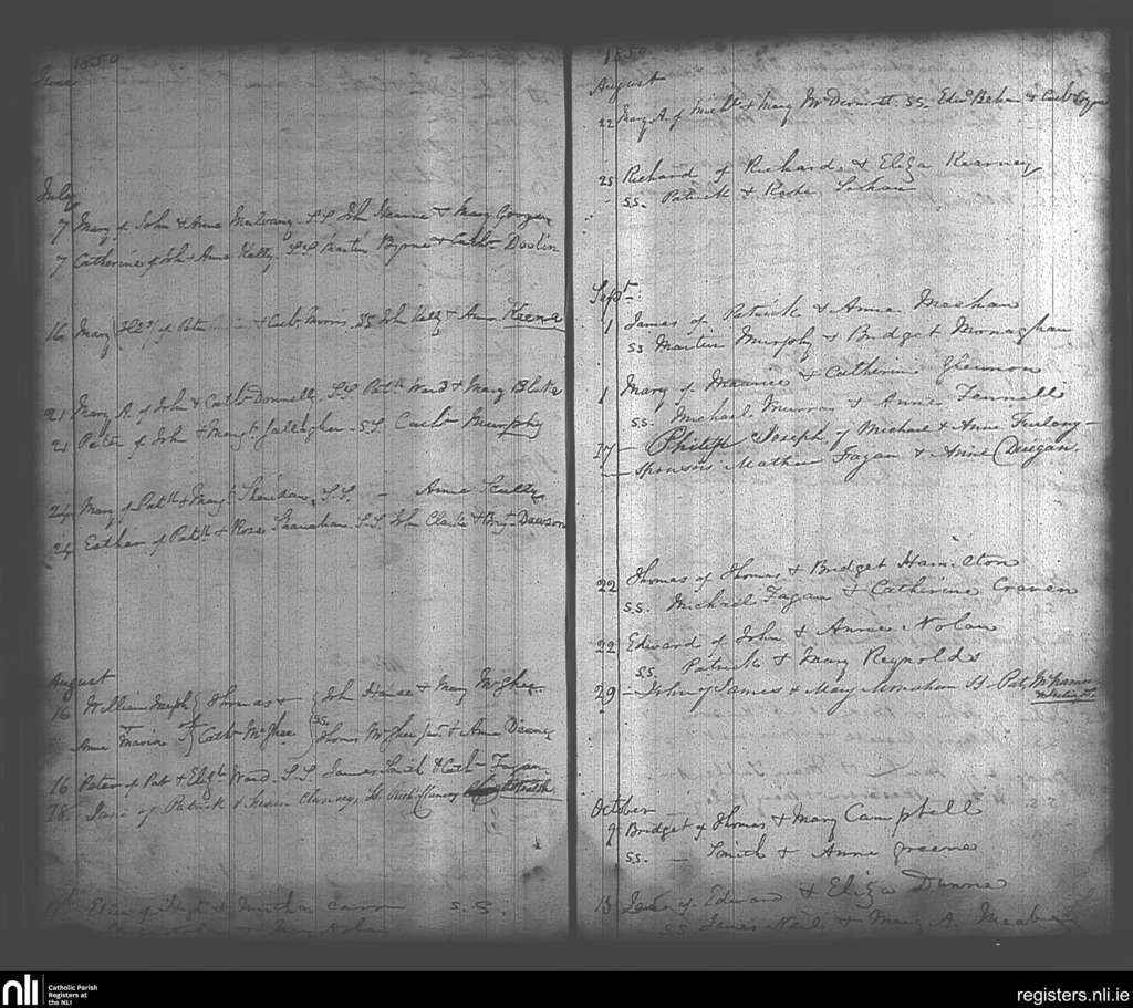 Maynooth; County of Kildare, Dublin; Archdiocese of Dublin. Baptisms, July 1850 to Oct. 1850