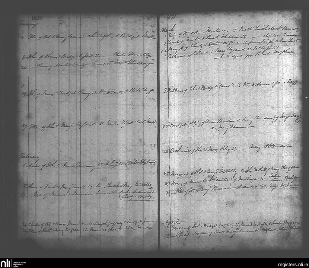 Maynooth; County of Kildare, Dublin; Archdiocese of Dublin. Baptisms, Jan. 1851 to Apr. 1851