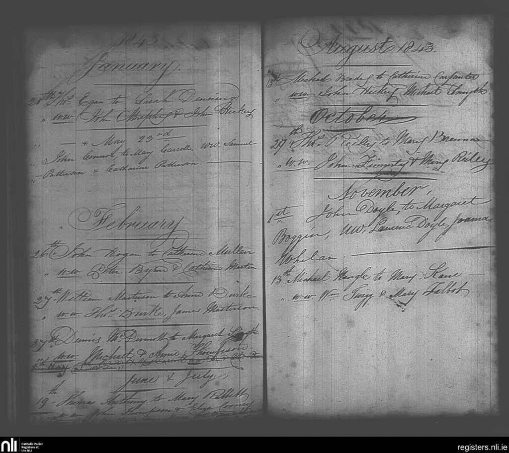 Maynooth; County of Kildare, Dublin; Archdiocese of Dublin. Marriages, Jan. 1843 to Nov. 1843