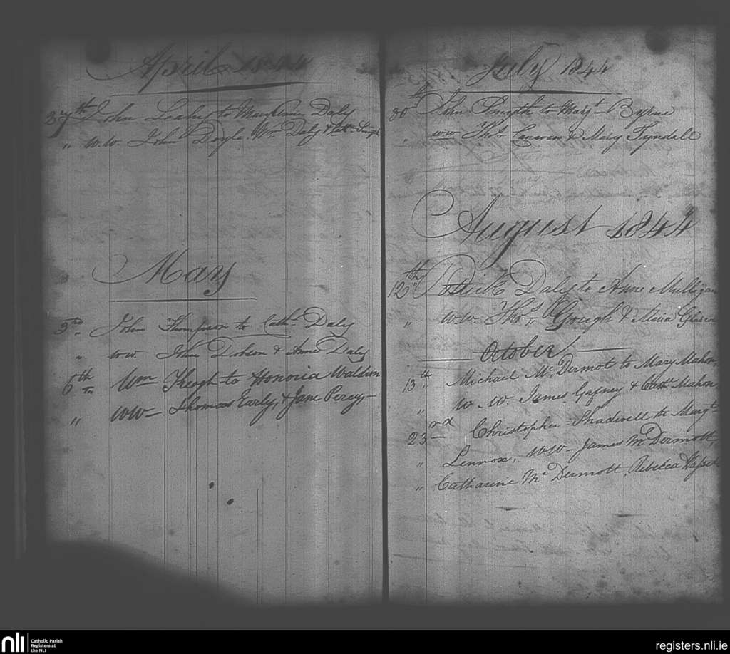 Maynooth; County of Kildare, Dublin; Archdiocese of Dublin. Marriages, Apr. 1844 to Oct. 1844