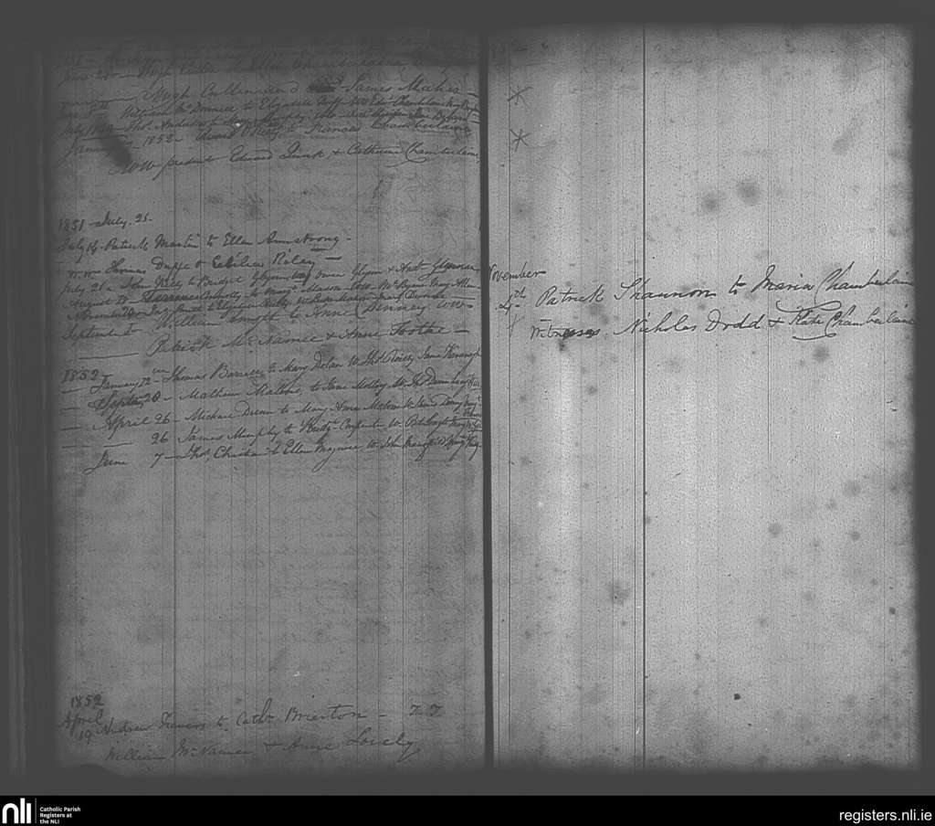 Maynooth; County of Kildare, Dublin; Archdiocese of Dublin. Marriages, July 1849 to Nov. 1852