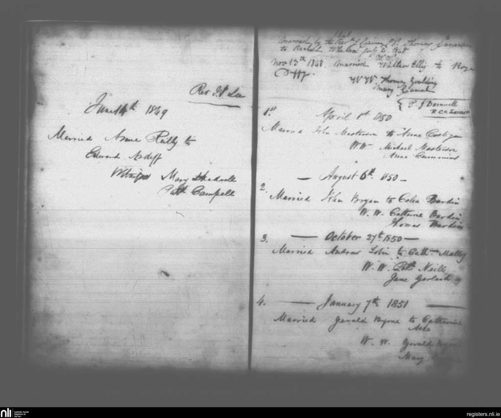 Leixlip; County of Kildare; Archdiocese of Dublin. Marriages, July 1848 to Jan. 1851