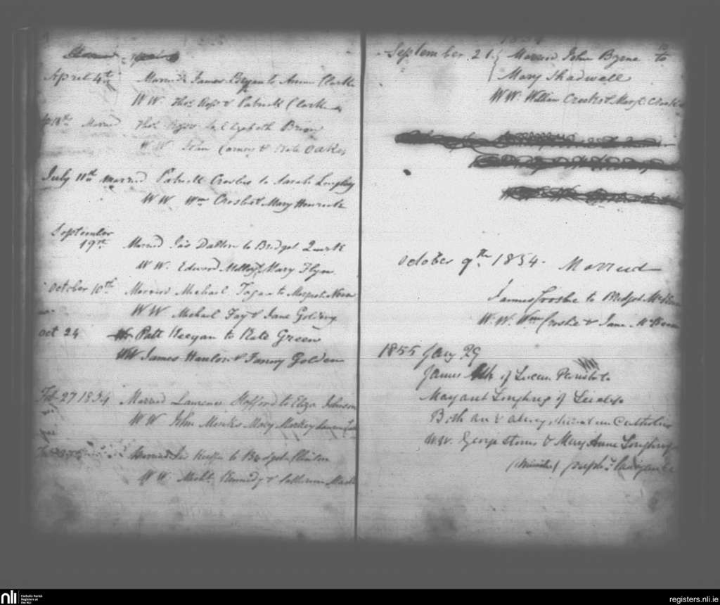 Leixlip; County of Kildare; Archdiocese of Dublin. Marriages, Apr. 1853 to Jan. 1855