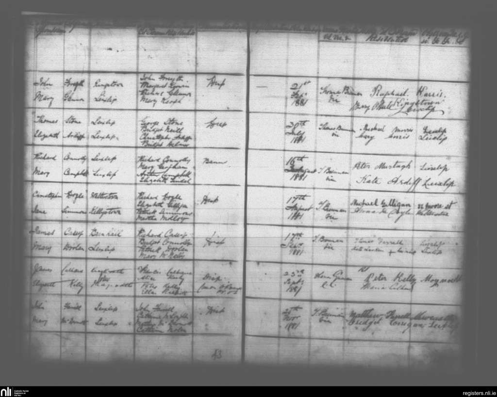 Leixlip; County of Kildare; Archdiocese of Dublin. Marriages, Feb. 1881 to Nov. 1881