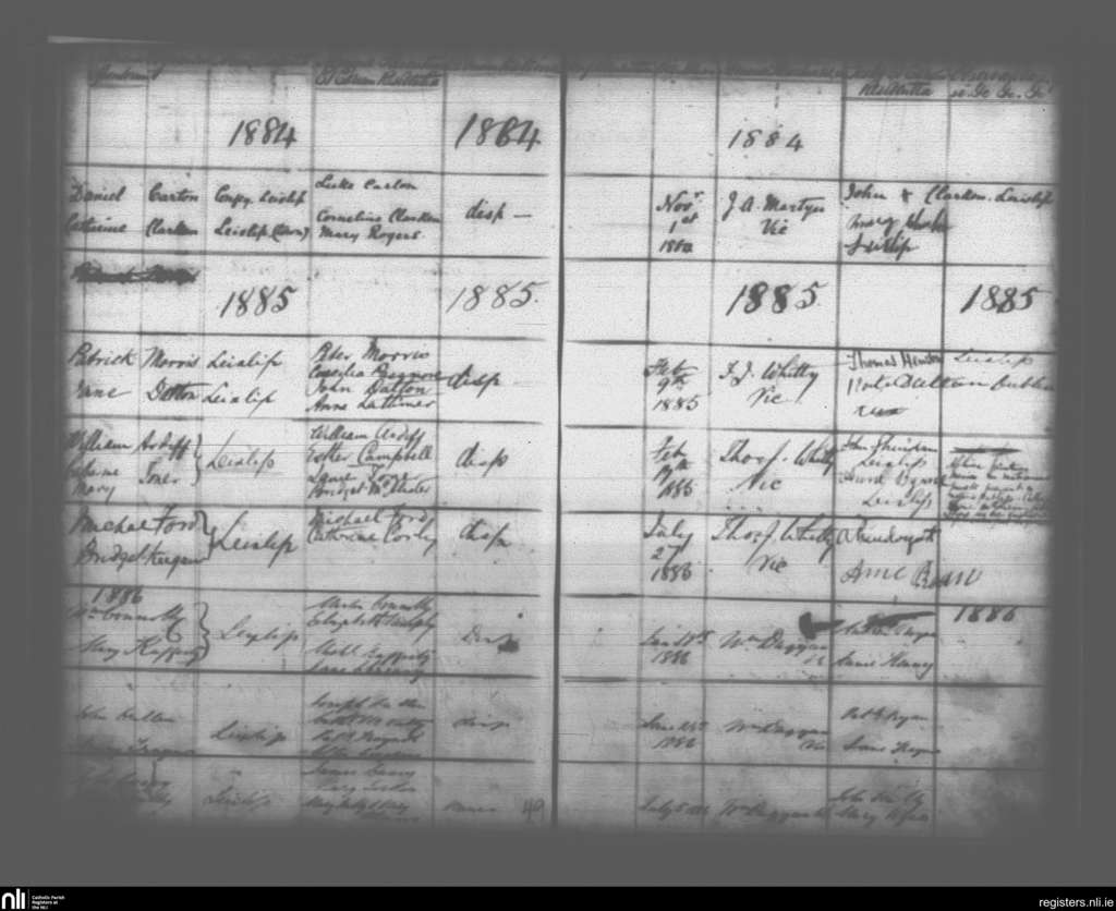 Leixlip; County of Kildare; Archdiocese of Dublin. Marriages, Nov. 1884 to July 1886