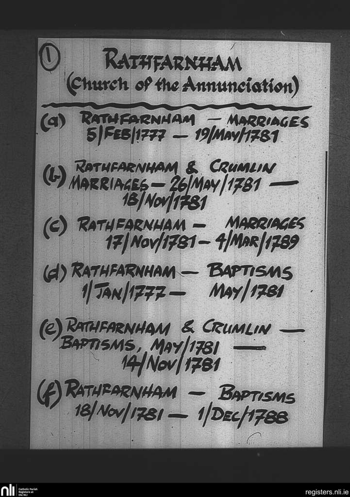 Rathfarnham; County of Dublin; Archdiocese of Dublin. Baptisms, Marriages