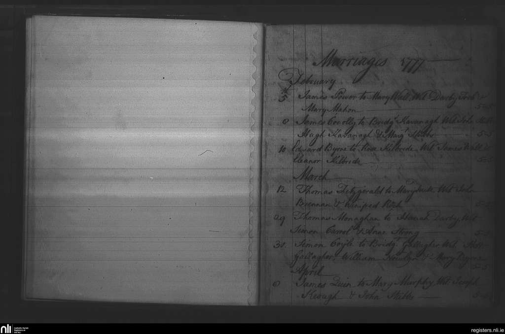 Rathfarnham; County of Dublin; Archdiocese of Dublin. Marriages, Feb. 1777 to Apr. 1777