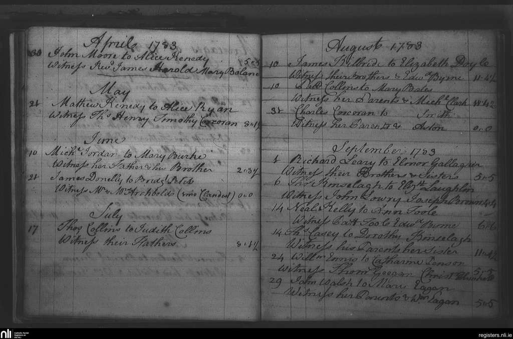 Rathfarnham; County of Dublin; Archdiocese of Dublin. Marriages, Apr. 1783 to Sep. 1783