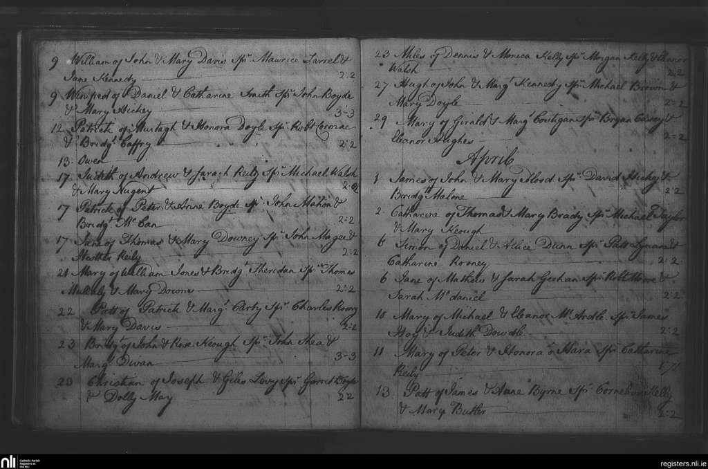 Rathfarnham; County of Dublin; Archdiocese of Dublin. Baptisms, Mar. 1777 to Apr. 1777