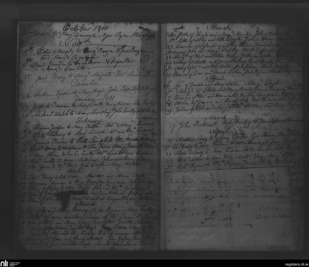 Rathfarnham; County of Dublin; Archdiocese of Dublin. Marriages, Oct. 1810 to Apr. 1811