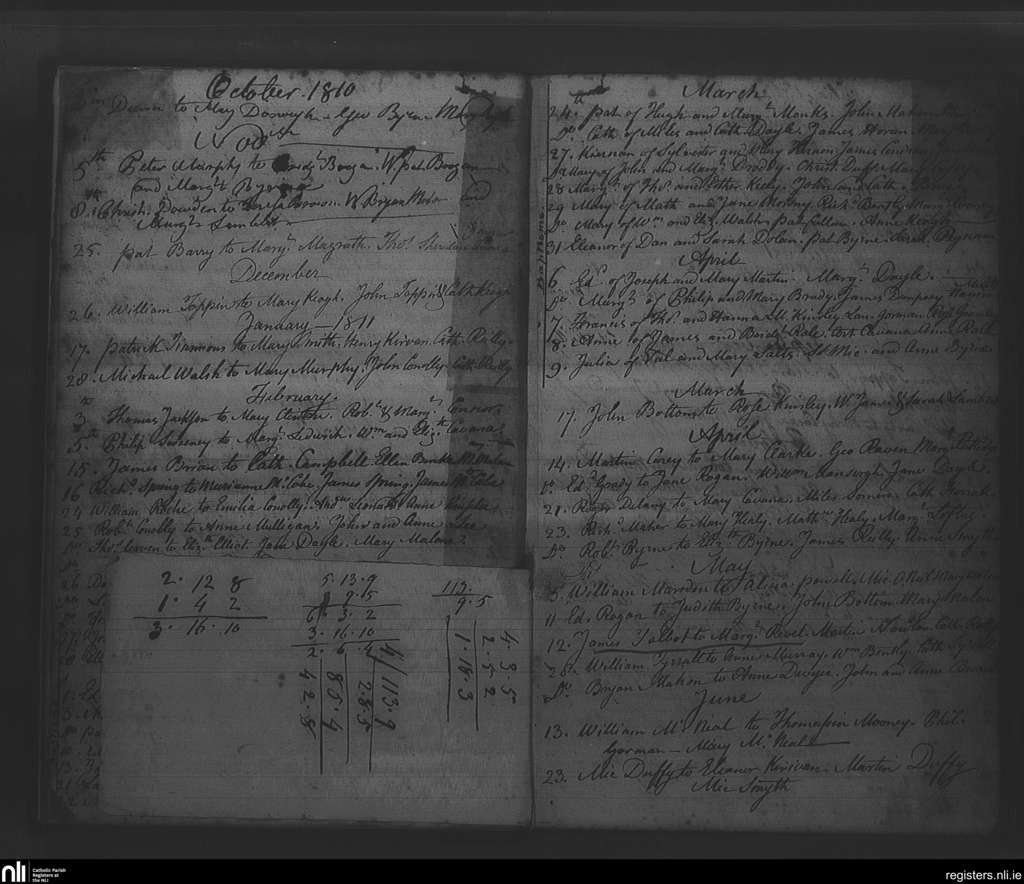 Rathfarnham; County of Dublin; Archdiocese of Dublin. Marriages, Oct. 1810 to June 1811