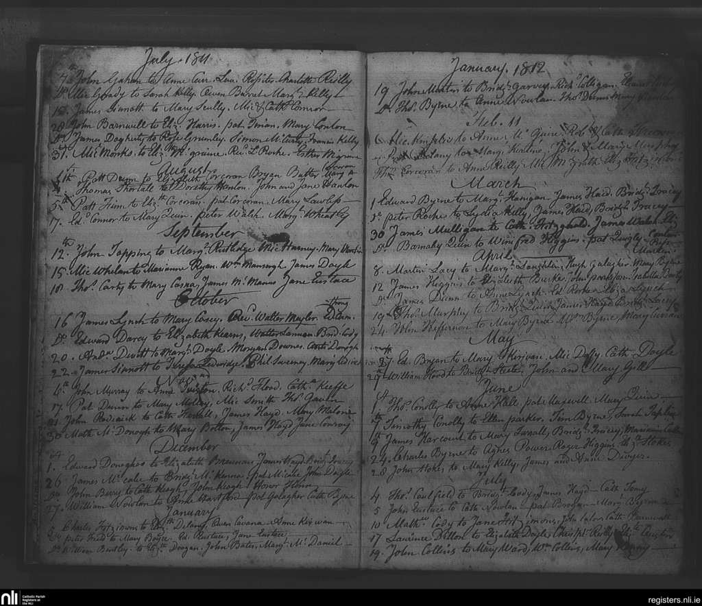 Rathfarnham; County of Dublin; Archdiocese of Dublin. Marriages, July 1811 to July 1812