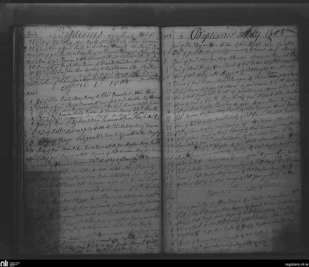 Rathfarnham; County of Dublin; Archdiocese of Dublin. Baptisms, Mar. 1808 to June 1808