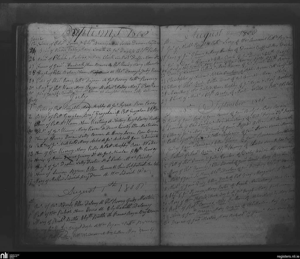 Rathfarnham; County of Dublin; Archdiocese of Dublin. Baptisms, June 1808 to Sep. 1808