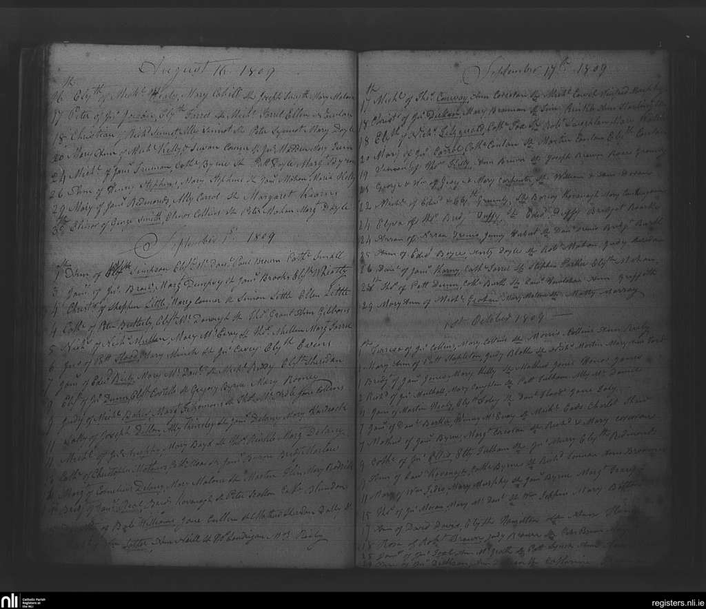 Rathfarnham; County of Dublin; Archdiocese of Dublin. Baptisms, Aug. 1809 to Oct. 1809