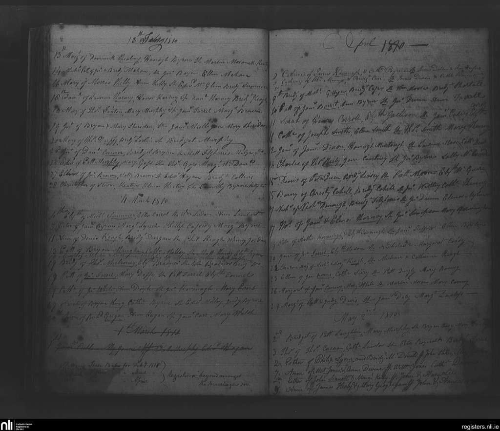 Rathfarnham; County of Dublin; Archdiocese of Dublin. Baptisms, Feb. 1810 to May 1810