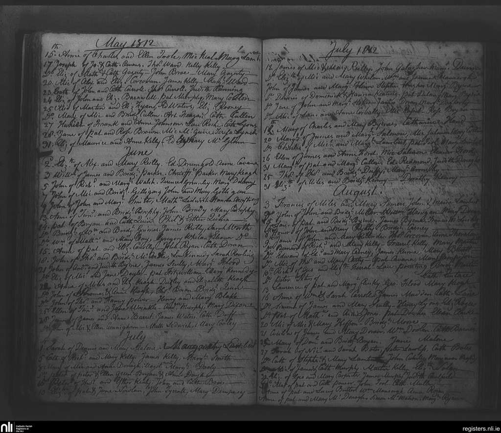 Rathfarnham; County of Dublin; Archdiocese of Dublin. Baptisms, May 1812 to Aug. 1812