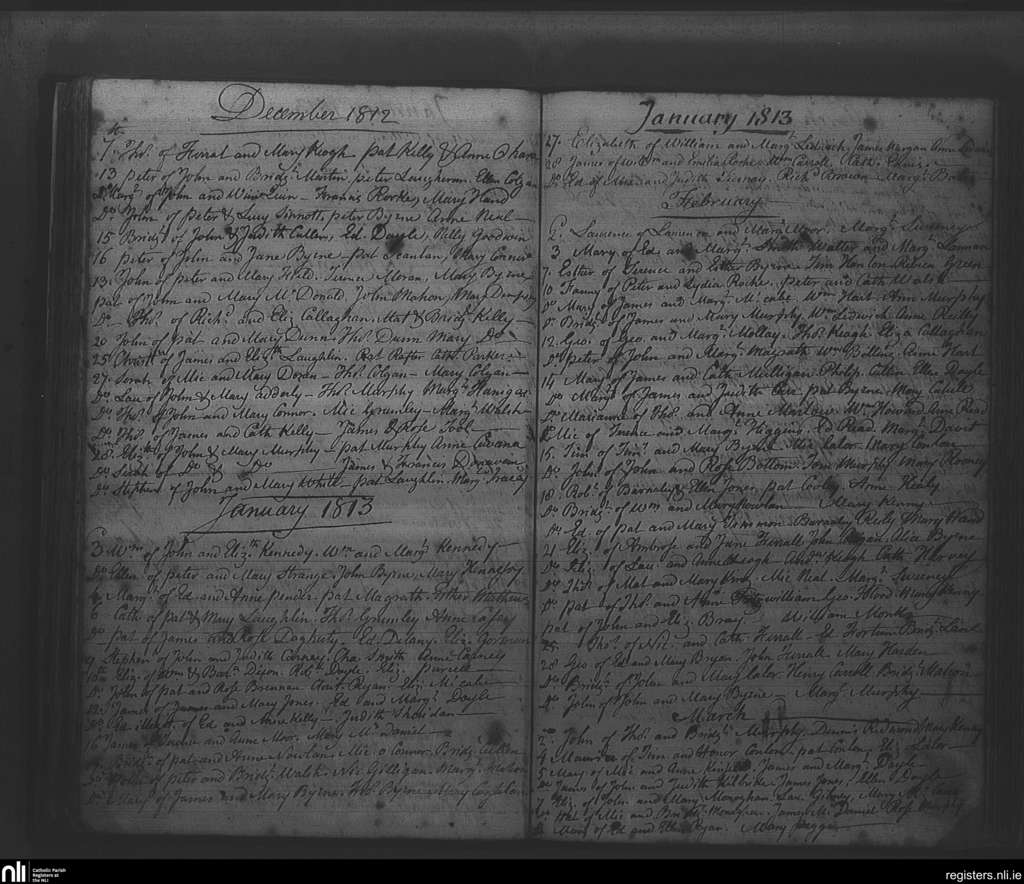 Rathfarnham; County of Dublin; Archdiocese of Dublin. Baptisms, Dec. 1812 to Mar. 1813